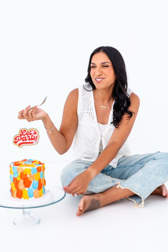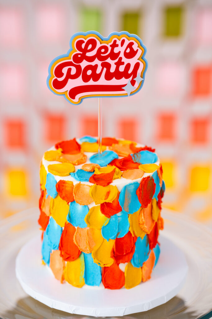 She envisioned lots of color, playful energy, and even a cake as a prop. A perfect reflection of her brand’s celebratory nature.