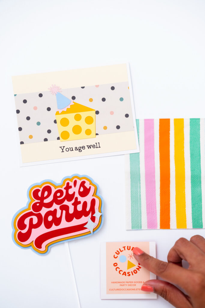 Sarah is the maker and owner behind Cultured Occasions, a handmade paper goods brand focused on celebrating all of life’s moments both big milestones and the everyday ones worth marking too. From greeting cards to party decor, her work is colorful, thoughtful, and crafted with care.